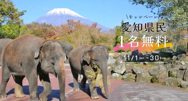11月1日(土)から11月30日(日)までの期間限定で、愛知県民の方を対象に「お車1台につき、1名様分の入園料金が無料」になるキャンペーンを実施します!紅葉が美しいこの季節に、富士山の麓に広がる大自然の中で、動物たちをじっくり観察したり、触れあったりしながら「秋の富士サファリ」をお楽しみください。