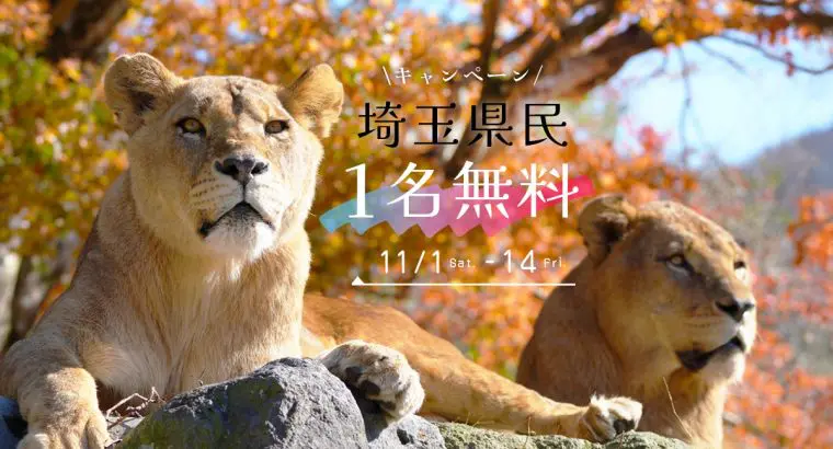 11月14日の「埼玉県民の日」をお祝いし、11月1日(土)から11月14日(金)までの期間限定で、埼玉県民の方を対象に「お車1台につき、1名様分の入園料金が無料」になるキャンペーンを実施いたします。紅葉が美しいこの季節に、富士山の麓に広がる大自然の中で、動物たちをじっくり観察したり、触れあったりしながら「秋の富士サファリ」をお楽しみください。