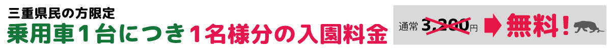 ・本キャンペーンはMy SAFARIにご登録の三重県民の方が対象で、乗用車1台につき1名様分の入園料金が無料となります。