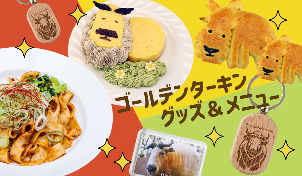 2026.04.24 イベント ゴールデンターキン 関連グッズ&メニュー販売中! 富士サファリパークでは、この春公開となったゴールデンターキンにまつわる商品を販売中! ゴールデンターキンにちなんだグッズや動物パン、生息地である中国・陝西省の郷土料理「ビャンビャン麺」など盛りだくさん! ご来園の記念やお土産に、ここでしか味わえない魅力を是非お楽しみください。 サファリショップ パン工房 サファリレストラン Next postワオキツネザルの「限定エサあげ体験」開催!(4月29日から) Prev postゴールデンターキン生態紹介、等身大パネル(4月29日~5月6日) 一覧へ戻る