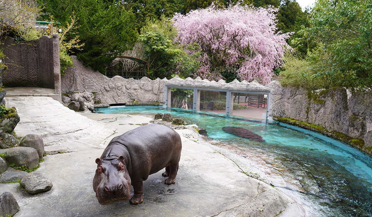 2026.04.17 その他 園内で「枝垂れ桜」が見頃です! 現在、どうぶつ村エリアでは、カバ展示場前の「枝垂れ桜」が見頃を迎えています。満開の「枝垂れ桜」は4月末頃まで見られそうですので、園内散策の際は是非お立ち寄りください。 園内マップ(どうぶつ村)