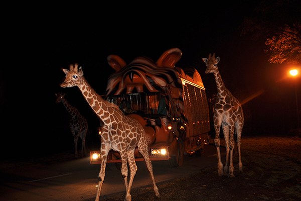 お客様自身でマイカーを運転しながら、ライトアップされた夜のサファリゾーンを周遊。