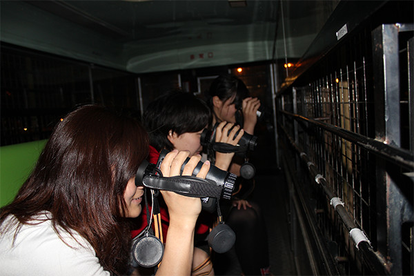 専用バスでサファリゾーンを周遊。ナイトスコープという特殊機材を使いながら、暗闇の中の動物たちの生態観察する特別なツアーです。